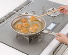 自動で油の温度を一定に保ちます。素材に合わせて温度を設定しておけば、強火・弱火を繰り返して設定温度をキープします。